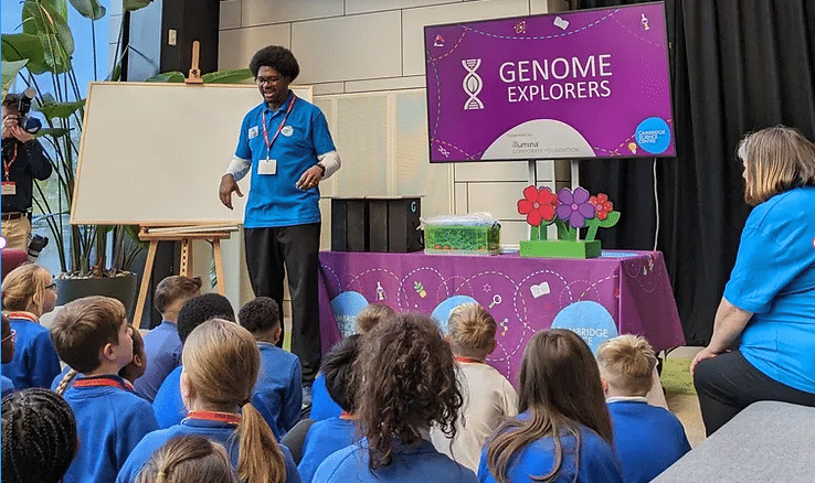 Illumina welcomed HRH The Princess Royal to the celebrations, which marked DNA Day. The event was buzzing with activity, with over 150 local school students engaging in a range of hands-on science activities . From extracting DNA from strawberries to touring the state-of-the-art laboratories, the students had a truly immersive experience. CEO John Bull and our team, Mario Satchwell, Joanne Staines and Katy Roper, introduced students to DNA through our Genome Explorers show.
